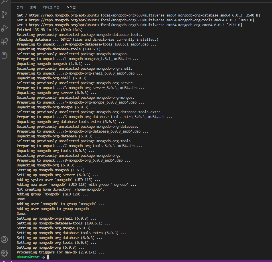 4. MongoDB 패키지를 설치합니다