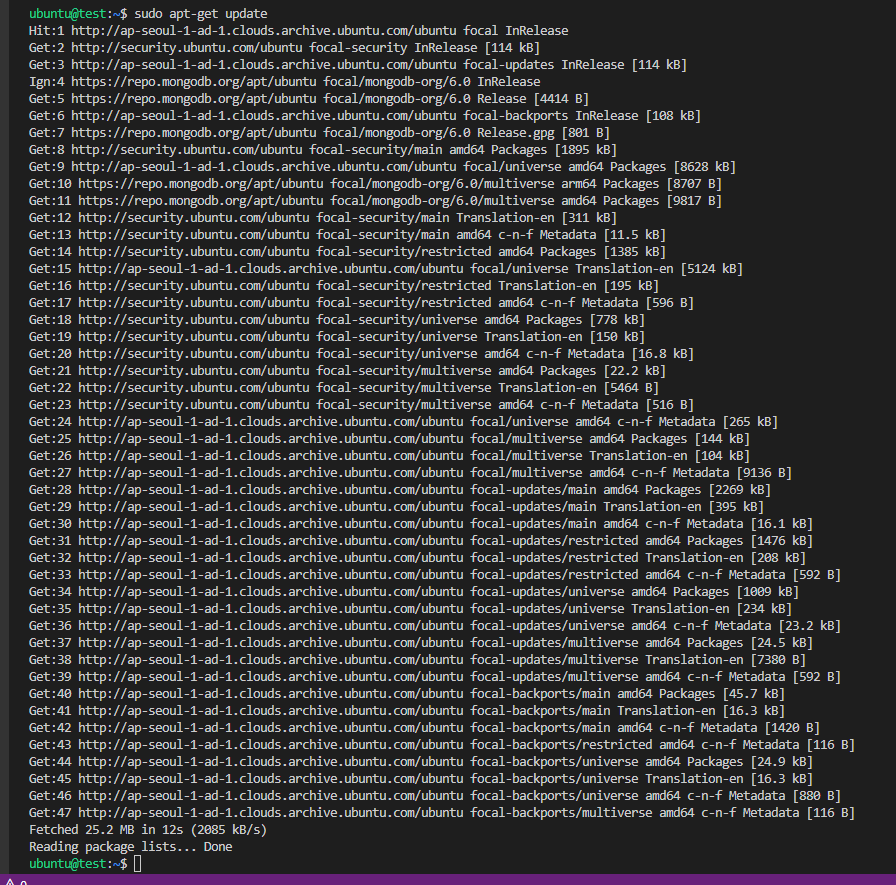 2. MongoDB에 대한 목록 파일을 만듭니다 echo "deb [ arch=amd64, arm64 ] https://repo.mongodb.org/apt/ubuntu focal/mongodb-org/6.0 multiverse" | sudo tee /etc/apt/sources.list.d/mongodb-org-6.0.list