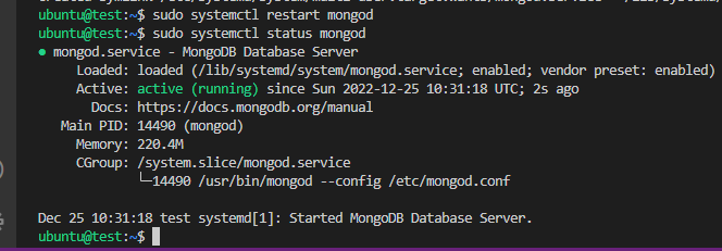 sudo systemctl restart mongod