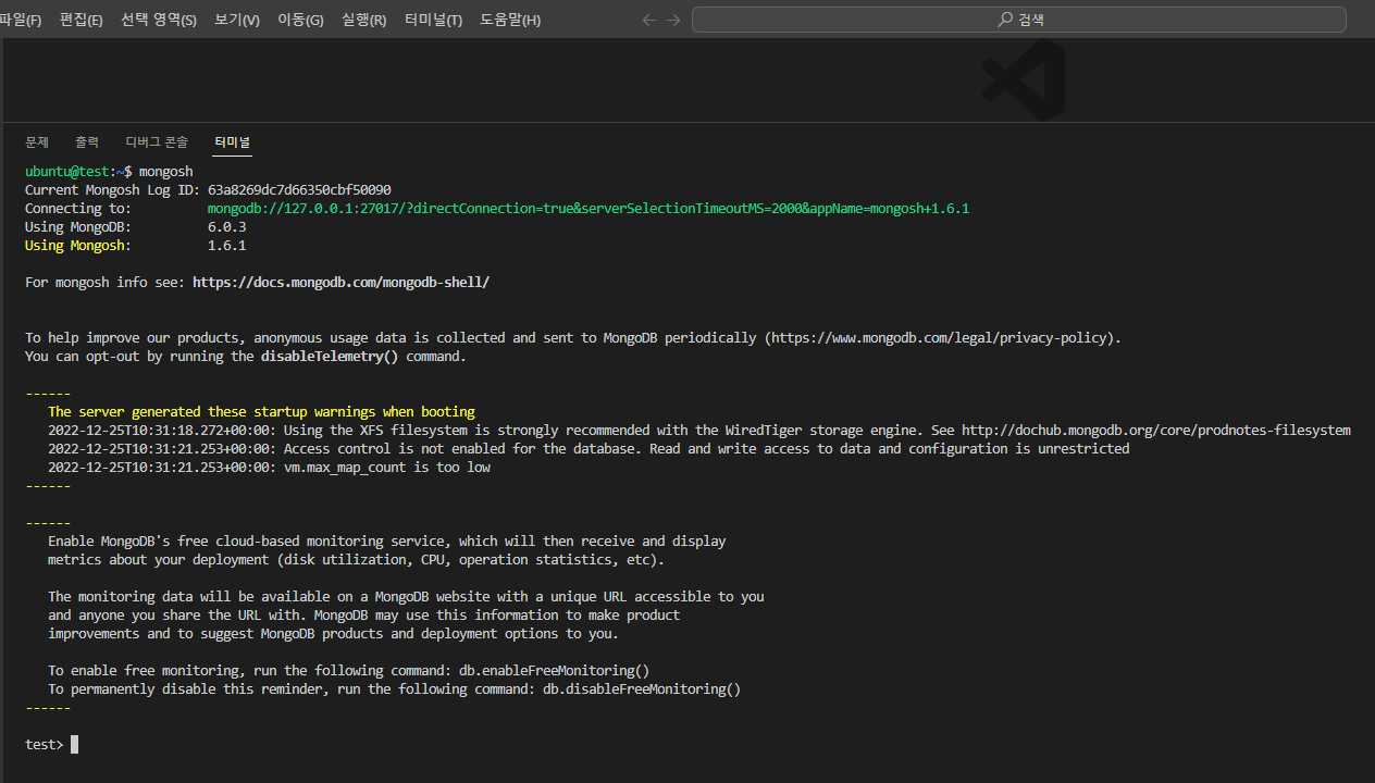 6. MongoDB가 성공적으로 시작되었는지 확인합니다