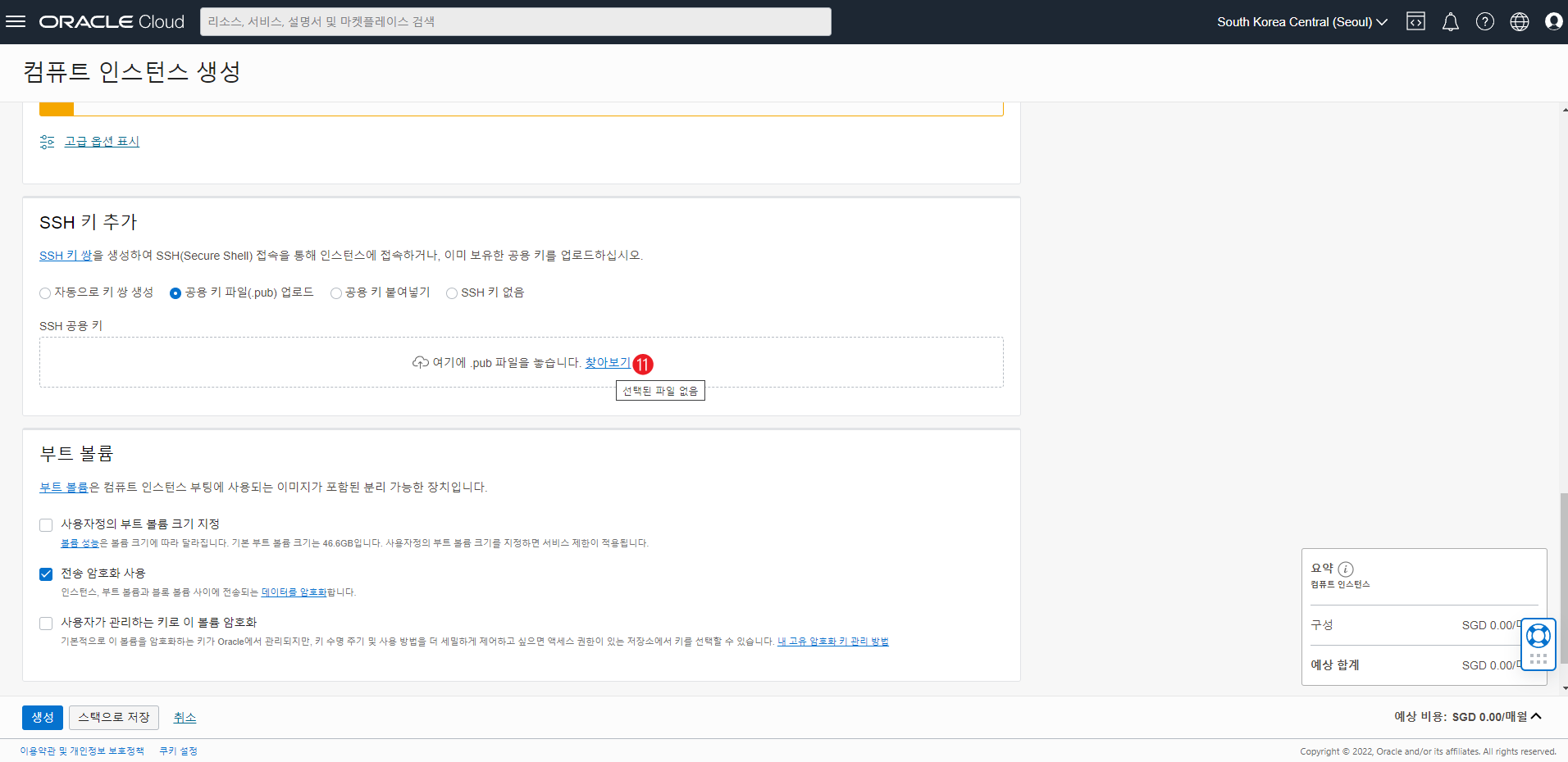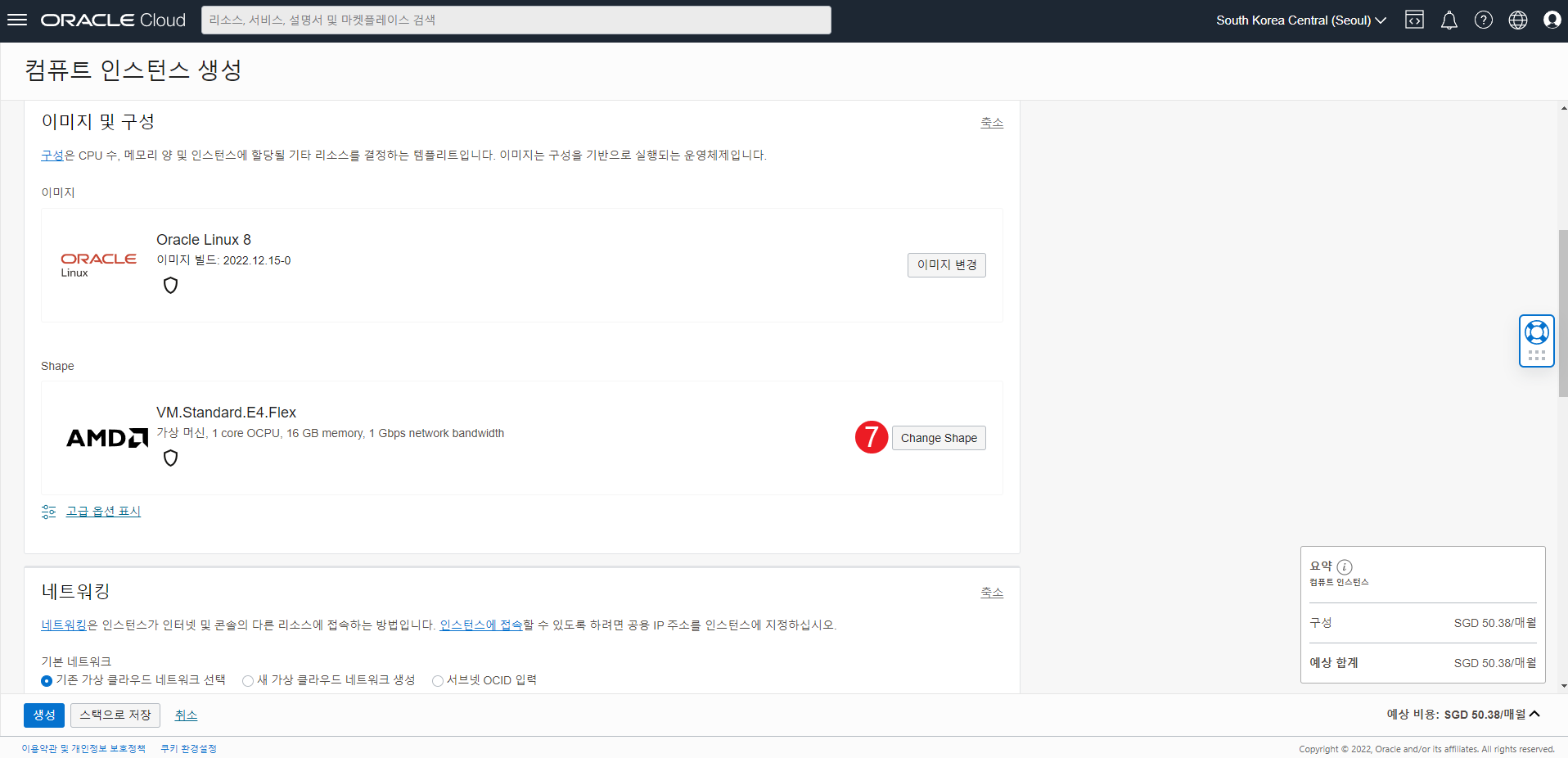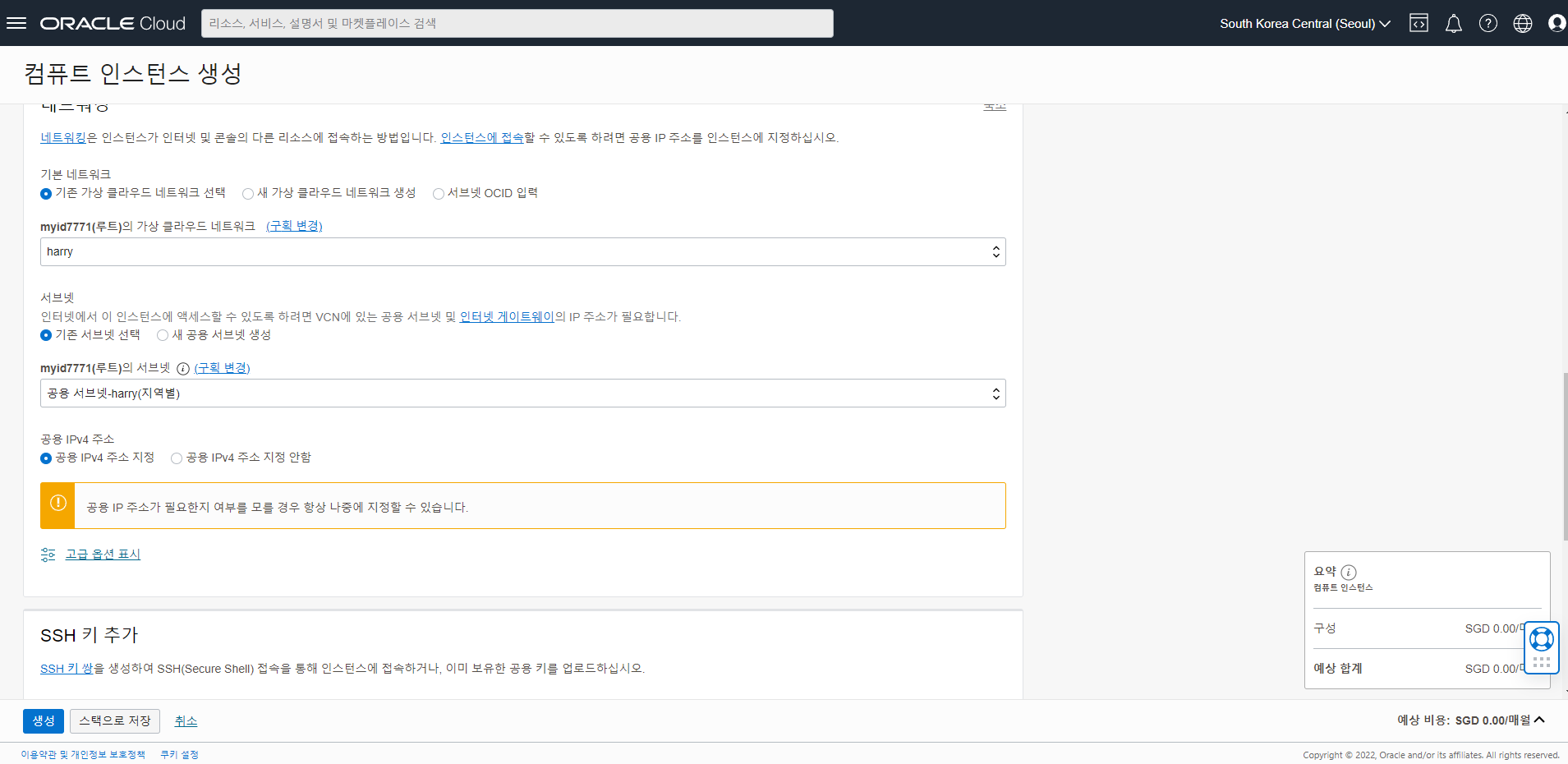 @ 지역은(Regions)는 서울로 했습니다. 결제 카드 등록을 안하면 생성이 안될 겁니다. 무료로 제공하는 양을 넘어서