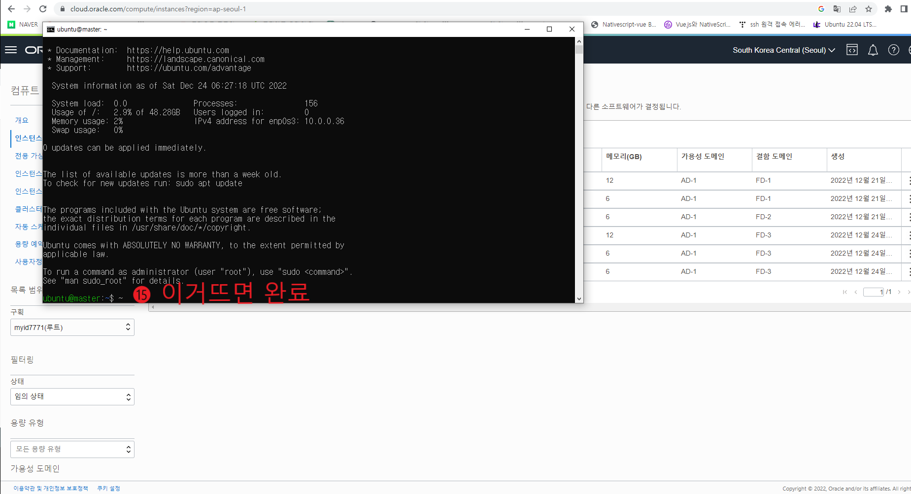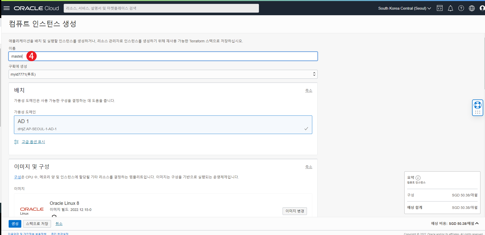 4. master의 역할을 할 인스턴스 2CPU 12 RAM 50GB