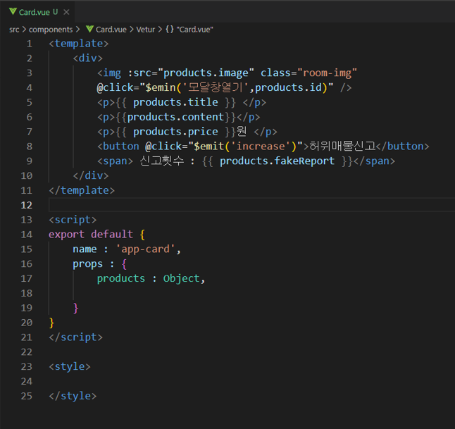 <button@click="$emit('increase')"> 허위매물신고 </button>